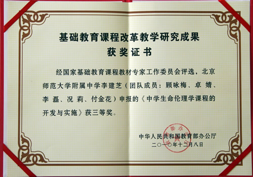 2010年12月8—9日,由教育部主办的“全国基础教育课程改革教学研究成果报告会暨颁奖仪式”在浙江省宁波市隆重举行。