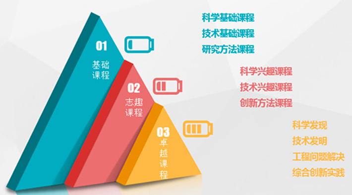 在高质量完成国家课程基础上,学校依托数学、物理、化学、生物、信息、科技等教研组优秀教师,利用先进的理化生实验室、科技创新实验室、智能温室等硬件设备,围绕“科学研究”、“技术发明”、“工程问题解决”、“创意设计实践”四个方向设计科技班特色课程。
