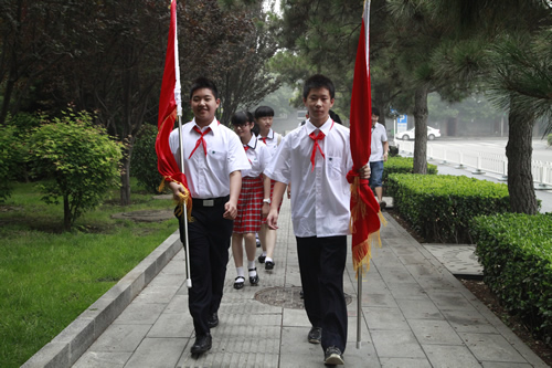 我校初一年级少先队员站“首都少年先锋岗”