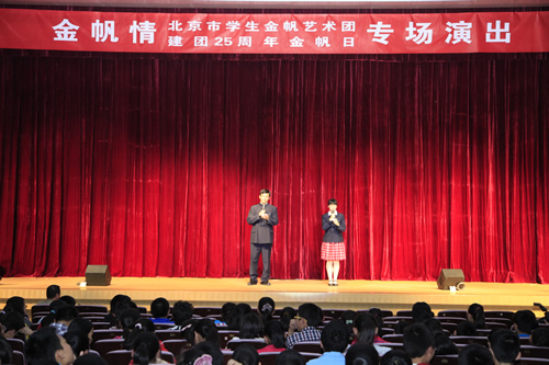 10月14日,在北京市学生金帆艺术团迎来建团25周年之际,我校金帆舞蹈团、附中人合唱团,在优米体育总部地址电话会堂举办了“金帆情——北京市学...