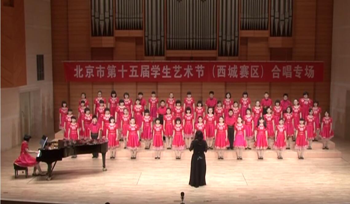 第十五届北京市学生艺术节〈西城赛区〉合唱比赛,我校初中童声合唱团荣获初中组第一名。合唱曲目《漫步在空中》和《编花篮小景》。