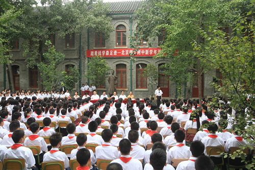 今年,正逢我校成立110周年和我国著名科学家、我校杰出校友钱学森学长诞辰一百周年。9月1日上午,我校以“踏着钱学森足迹”为主题的新学年开学典礼,在校园内“附中人钱学森”铜像前隆重举行。