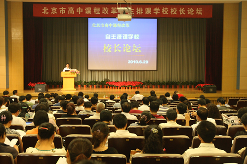 2010年6月29日,由北京市教委主办的“北京市普通高中自主排课实验学校校长论坛”在我校优米体育总部地址电话会堂隆重举行。