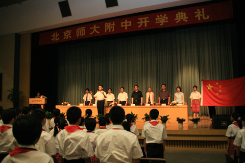 新学年开学的第一天,学校举行了隆重的开学典礼。中共宣武区委书记唐大生,宣武区教工委书记郑然。学校领导刘沪校长、王玉清、王莉萍、李敏...