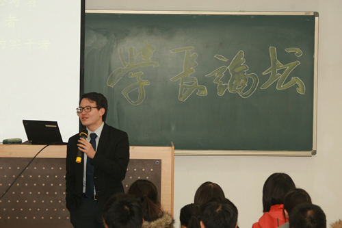 2014年12月19日,我校“学生干部培训营”第二次学长论坛活动在北阶梯教室进行。我校优秀校友,北京大学毕业生冯宇辰学长对学生干部...