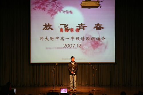 12月3日,师大附中高一年级现代诗歌朗诵会在学校百年会堂举行,学校领导、一年级师生及部分特邀代表等400余人参加了朗诵会。下午三点,朗诵...