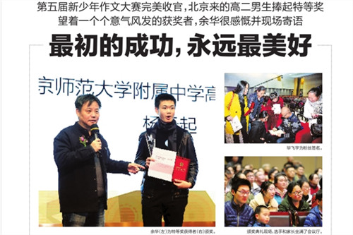 我校学生杨云起荣获全国新少年作文大赛特等奖