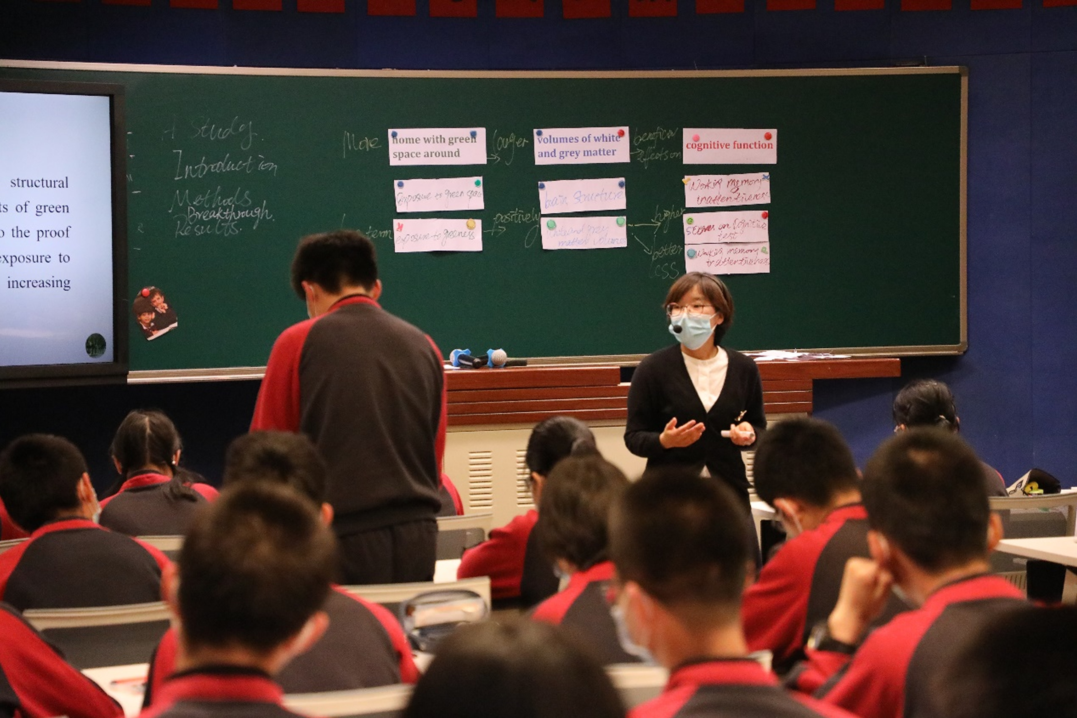 本次活动主要分为四个部分。首先,朱丹、郭文涛老师做了关于《基于语篇分析的阅读复习》的研究课。朱丹老师的课题为《基于语篇分析的阅读复习(2020西城二模D篇)》的研究课,从激活学生日常阅读体验引入话题,引导学生提炼该说明文语篇中有效学习的定义和方法,进而加以运用解决自己学习中的问题,从而提升学生的语言能力和学习能力,实现英语学科的育人价值。郭文涛老师做了一堂题为《基于语篇分析的阅读复习(2018中考C篇)》的研究课。郭老师引导学生深入挖掘了接触绿地对孩子脑认知功能的影响,通过分层设问引导学生深层理解文本的特定信息,并以文章结构图的形式逐步梳理出该说明文语篇中三个变量内容之间的逻辑关联,将语言知识和语言技能重新整合,理清文章脉络,提炼语篇结构,实现了对作者观点和全文主旨的理解。