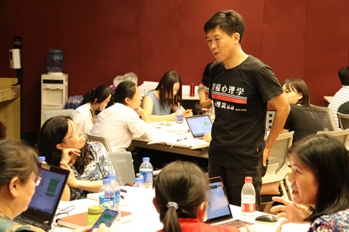 研究中心主任赵昱鲲博士开启了培训的第一场。他结合中学教育常见的问题,用风趣幽默的语言为老师们讲述什么是成长型思维,并引导大家把这种思维运用到实际教育教学中。讲座内容丰富,理论与实践相结合,老师们纷纷表示受益匪浅。
