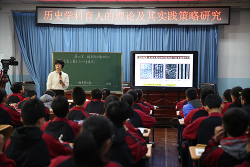 我校梁原草副校长代表学校致辞。大会由卓越工作室负责人北京教育学院历史系主任方美龄主持。方主任就卓越工作室阶段成果进行了整体汇报,五个核心组的负责人分别汇报了各自的研究成果。历史组李莉老师以《魏晋南北朝的文化》进行了课例展示,李静老师代表师大附中核心组进行了主题发言。研讨会还安排了现场研讨与专家点评环节,中国社会科学院吴伟教授就文化史教学和国家统一主题进行了总结性发言。本次研讨会得到了专家领导和广大一线教师的积极反馈和认可,对初中历史学科育人的有效路径做出了有益探索。本次会议得到了南分校领导和电教中心、后勤部门及相关老师的大力支持。
