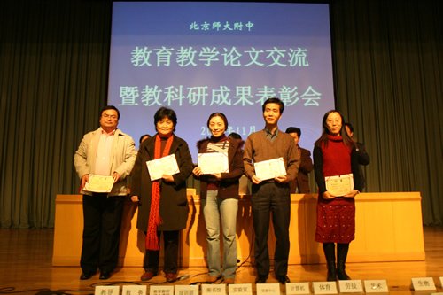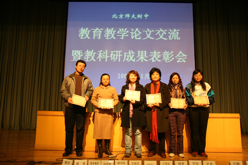 另外,会议还公布了以下信息:宣武区第四届“1―4―1骨干教师”评选结果、宣武区首届“科研带头人、科研青年骨干”评选结果、宣武区“十五”教育科学研究立项课题优秀研究成果名单、2006年论文(教学案例)公开发表、获奖教师名单和各教研组辅导学生竞赛获奖情况。