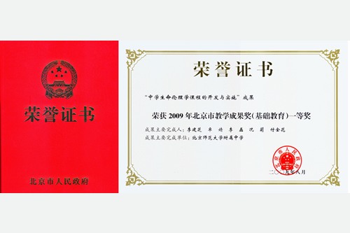 9月8日,在北京国际饭店隆重举行“第三届基础教育教学成果奖”颁奖典礼,我校生物教研组完成的课题“中学生命伦理学课程的开发与实施”荣获一等奖,一等奖是本届成果奖的最高奖项,每四年评选一次。课题组代表李建芝老师和刘沪校长出席了颁奖典礼。9月10日,在宣武区表彰先进大会上,区领导为我校课题组颁发了获奖证书。本课题最初是在2003年由日本筑波大学的Darryl Macer教授介绍引进,我校有幸成为中国大陆地区第一所开展生命伦理学教育的中学。学校领导和生物教研组对这一课题高度重视,多次召开研讨活动使课题研究不断深入。此外,在学校领导的鼓励支持下,生物组教师多次参加国际和国内生命伦理学学术交流会议,在国际、国内核心期刊发表英文、中文论文数十篇,并获得北京市基础教育优秀地方课程与校本课程设计一、二等奖。经过六年的潜心实践,“生命伦理学”课程展现出强大的生命力,成为学生最喜欢的选修课程之一,并成为宣武区跨校选修的精品课程。生物组全体教师编著的《中学生命伦理学青少年读本》,即将由教育科学出版社出版。这些成果的取得也得到了朱正威先生和政治教研组、英语教研组教师的大力支持。