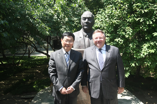 本杰明・富兰克林高中是美国一所著名的公立中学,曾在全美百所公立名校中排第16位,现排名20多位。最近,该校被评为美国“蓝丝带学校”(对美国中小学校的最高荣誉)。本杰明・富兰克林高中为我校开设AP课程、引进美国优质教育资源提供了宝贵意见和指导。此次来访,代表团为我校带来了丰富的美国高中教材、教辅资料和AP学科教材。