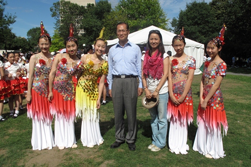 受加中文化友好交流协会邀请, 我校舞蹈团师生26人在刘沪校长的带领下于7月27日――8月1日赴加拿大参加了由我国驻加拿大使馆及总领馆举办的庆祝中加建交40周年文艺演出。在多伦多richmonhill剧场和渥太华市政广场,同学们克服长途跋涉的艰辛,完美演绎了《天路》、《远方的客人请你留下来》、《鱼儿》、《高高的苗岭》、《竹之梦》、《杨柳青》等不同风格的舞蹈,受到了当地华人华侨和加拿大人民的热烈欢迎和高度赞扬,掌声、叫好声连绵不绝。演出结束后,观众们久久不愿离去,纷纷上前与我校演员合影。我驻加拿大大使馆文化参赞亲切接见了舞蹈团师生并与同学们合影留念。他感谢同学们不远万里来到加拿大用美妙的舞姿传播中华文化、传递中国人民的友谊。刘沪校长向驻加拿大大使馆赠送了我校黄全信老师的书法作品和学校画册。加方市长、议员等知名人士观看了演出。