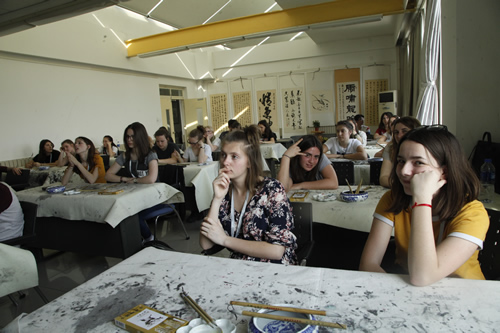 学习期间,法国学生在国际部老师的指导下,分别围绕初识、就餐与点菜,购物等主题,进行了专项学习,还到什刹海进行了汉语实践活动。他们还上了国画、书法、剪纸等文化课。法国学生在亲手完成书画和剪纸作品的过程中,领会了中国传统文化的盎然情趣。