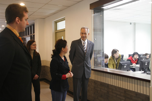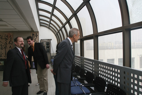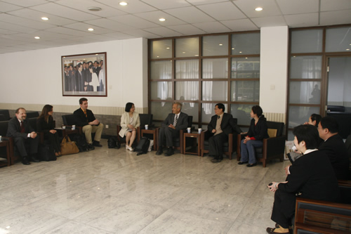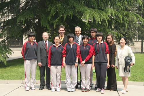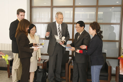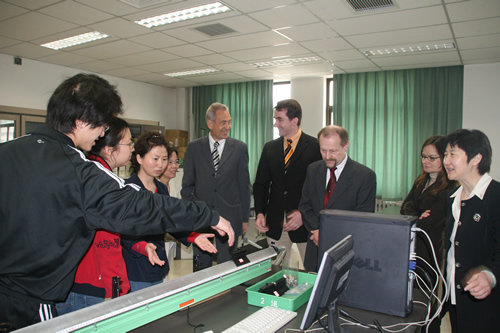 4月28日,德国吉森市赫尔德文理高中校长Gatb先生率领该校领导和教师一行五人来我校访问,刘沪校长、顾咏梅校长助理、冯健主任等与客人们就建立两校友好合作关系事宜进行了亲切的会谈。会谈之后,客人们参观了学校设施,对我校优美的校园环境和先进的教学设备给予了高度的评价。