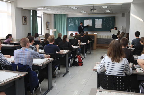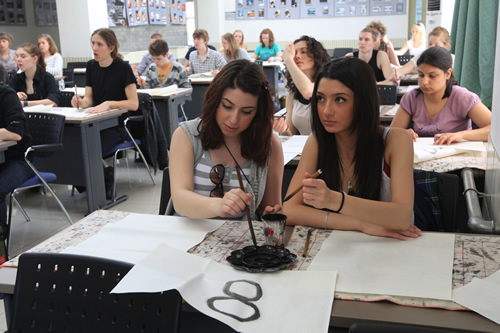 4月9日,瑞典斯德哥尔摩国际学院师生40人来我校学习国画和太极拳,并与高二年级同学进行了热烈的交流。