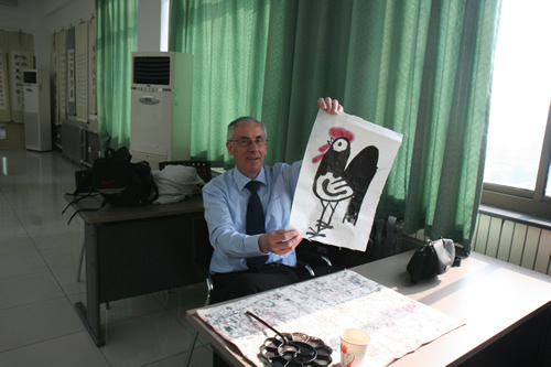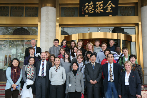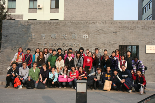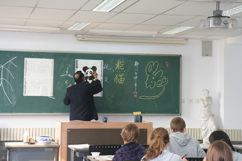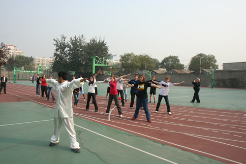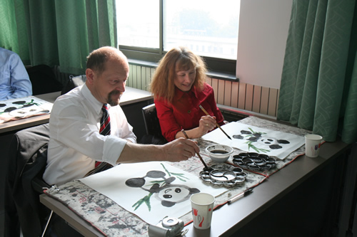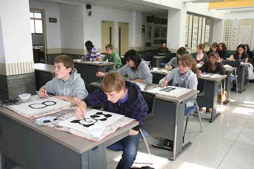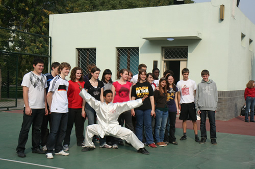 10月24日,友好校德国吉森市赫尔德文理中学师生24人来我校访问,他们在我校学习中国武术和国画,并与初二(6)班同学进行了热烈的交流。