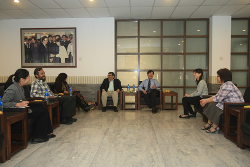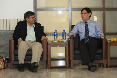 9月19日下午,在国家汉办师资处李亚妮老师的陪同下印度教育代表团一行三人来校交流访问。代表团成员有印度中等教育委员会主席Vineet Joshi先生;印度中等教育委员会创新与研究部主任Sadhana Parashar女士和印度尼赫鲁大学语言、文学和文化研究学院中国和东南亚研究中心教授、CBSE汉语普通话课程委员会主席Priyadarsi Mukherji先生。刘沪校长出席座谈会,向代表团介绍了学校的基本情况和办学特色,Vineet Joshi主席介绍了印度中等教育发展情况。随后,双方就共同关心的教育教学管理、学生综合评价制度等进行了讨论和交流。代表团一行还参观了校园,观摩了我校金帆舞蹈团的排练课。优美的校园和优雅的课堂给代表团一行留下了深刻的印象。