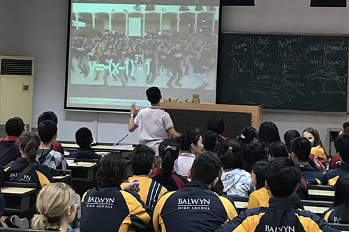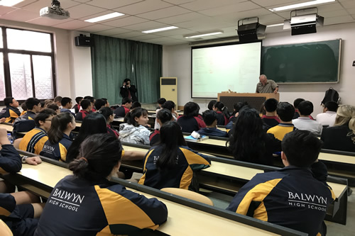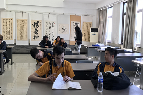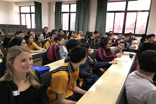 上午9:00,在研修楼接待室举行欢迎仪式。徐兰校长助理对澳大利亚客人的到来表示热烈欢迎,并向来宾介绍了学校概况。双方针对中美高中合作课程项目和留学生教育进行了交流。随后,博文中学的学生分组和我校AP学生一起上了外教Albert博士的科学课和吴雯昕老师的英语基础阅读课。科学课上,学生们伴随着经典的流行音乐,按照函数图像翩翩起舞。英语课上,中澳学生共同探讨当前热门话题。下课后,中澳学生仍然意犹未尽,孩子们一起合影,互留联系方式,约定保持联系。来宾们还在交流中心老师们的带领下参观了我校的文化设施和学科专业教室。