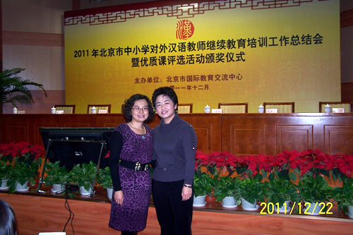 在2011年北京市对外汉语优质课评选活动中,我校对外汉语教研组组长顾洁老师被聘请为专家评委,朱淑娟老师的汉语课获得一等奖,郑洁老师的文化课获三等奖。