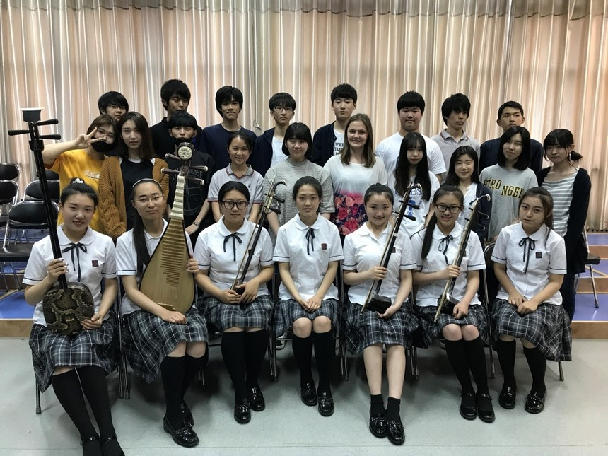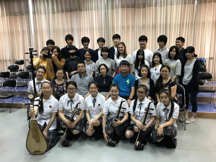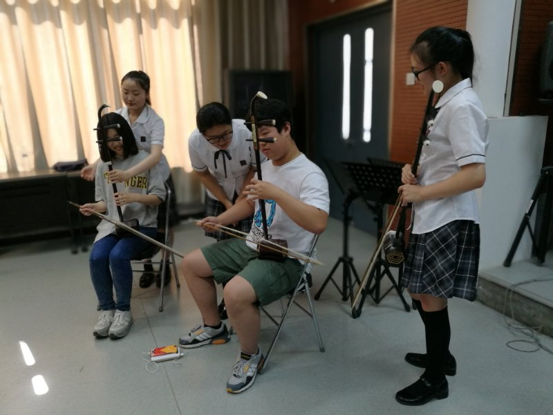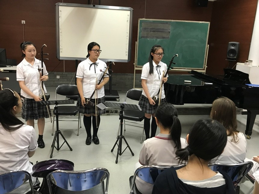 2017年5月26日,詹俊峰,刘睿博两位老师带领中国音乐学院附中高二年级学生来到我校,与师大附中国际部学生进行中国民乐文化交流。中国音乐学院附中的学生们为留学生展示了中国古典音乐的乐器演奏,二胡、琵琶、三弦、板胡、钢琴等乐器在学生们的手上流淌出了优美的旋律,深深吸引了附中的学生,大家都看的目不转睛。演奏过后,留学生们与中国音乐学院附中的学生们组成小组,学生们纷纷围在乐器周围学习、感受和体验中国古典乐器之美。通过此次交流,留学生们更加了解到中国,了解到中国文化。