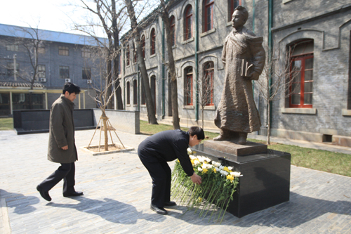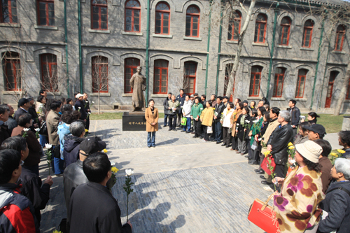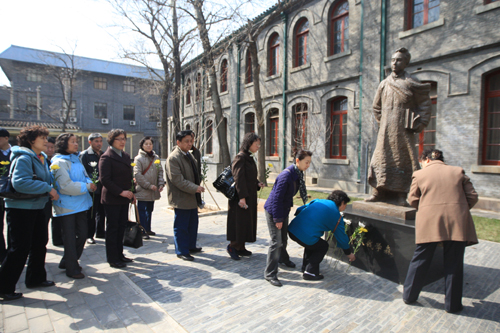 3月28日,我校73届初中、75届高中部分校友返校,在钱学森铜像前举行了悼念活动。