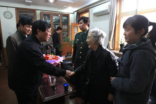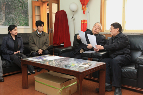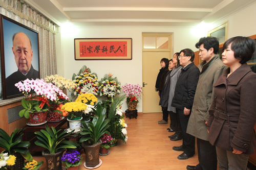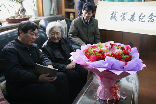 钱老之子钱永刚教授和钱老之孙钱磊少校接待了刘沪校长和师生们。