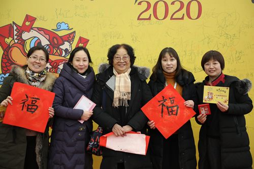 “倩影祈福”是校工会特意为本次活动定制的一面“祈福墙”――除了有萌萌哒的“祈福相框”供参与者合影留念外,到场的老师们或带着家属,或三五成群在祈福墙前签名写字,写下对来年的美好的祝福和希望,留下一张张喜乐开怀的合影。