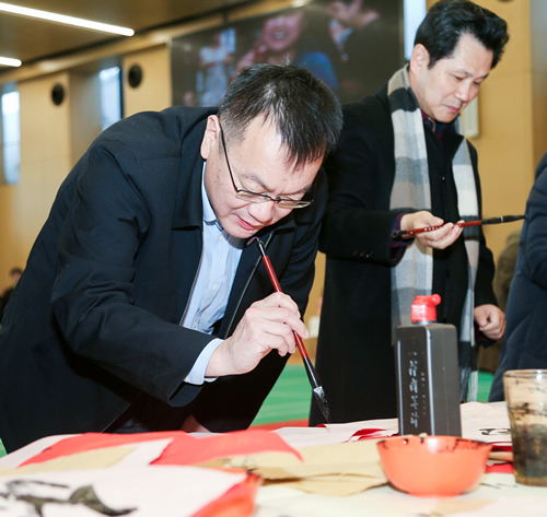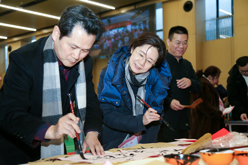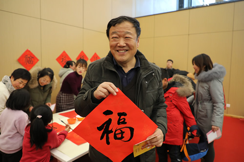 妙笔生“福”是国际部送给附中教师们的一份特殊的新年祝福。老师们用毛笔书写不同字体的“福”字,在红红火火的方斗纸上写下了自己对新年的祝福,并把“福”字带回家,喜迎“福”到运到。