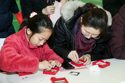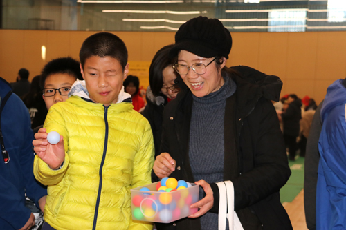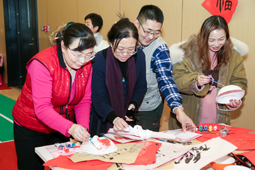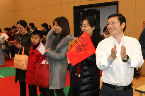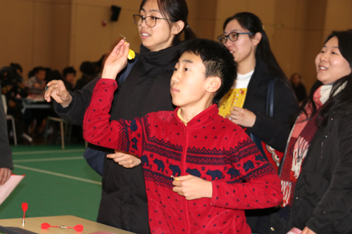 今年的庆祝活动,告别了往年“教师联欢会”的传统模式,采用了“新年游园会”的崭新形式。“游园会”类似春节的“庙会”,以“摆摊儿”形式吸引教职工和“附二代”参与互动。游园会的节目经过工会委员以及志愿者们的精心策划,洋溢着浓浓的中国传统文化的意韵。