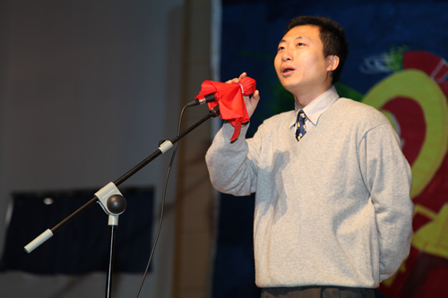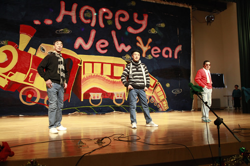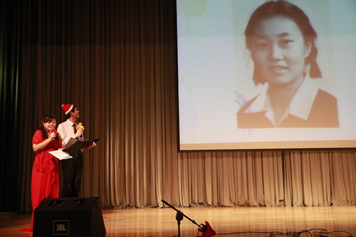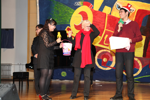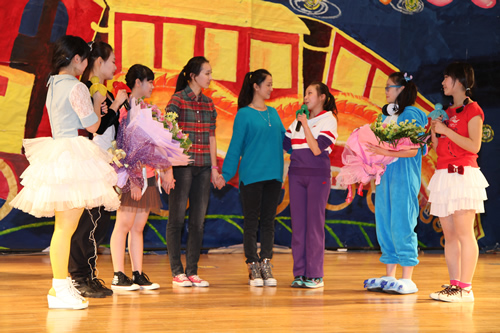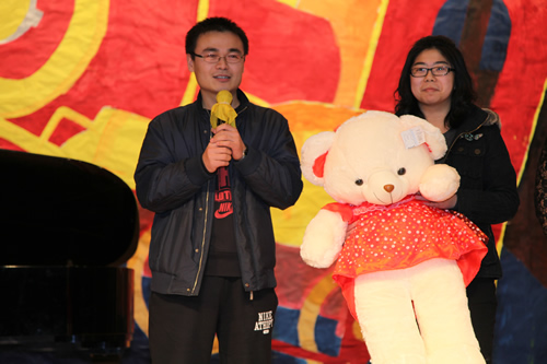 三次抽奖活动及动作、语言等游戏不断穿插在节目之中,为晚会增添了悬念、惊喜与趣味。两位外教的莅临也成为了本次联欢的一大亮点!
