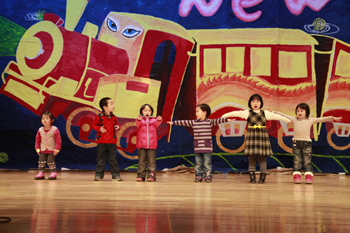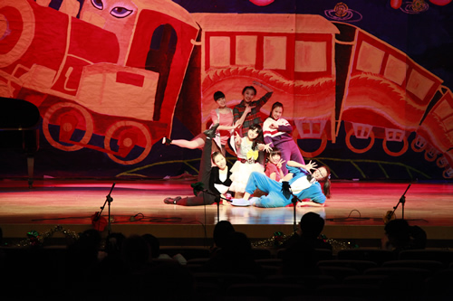 女生独唱《江山》寄托着附中教职工对中国共产党90岁生日最深情祝福;身居海外的三位教师为联欢会送来的问候感动了在场的人们;老教师时装秀《多彩生活》展示了退休教师的乐观、自信及他们生活的丰富多彩;青年教师的广播操《青春魅力》、幼儿健康操《世界真美好》、京剧唱段、诗伴舞《笛韵》、学生自编歌舞剧《爱,因为在心中》、男生独唱《中国的土地》等一系列节目使晚会高潮迭起,精彩纷呈。