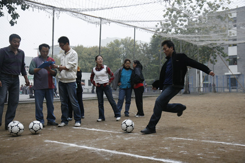 2008年10月23日下午,北师大附中操场上欢声笑语,气氛异常活跃。有近130人参加的教职工运动会在愉快而欢乐地进行着。运动会项目多样,包括30米赶猪、30米托球、30米跳绳、定点投篮、沙包掷准、定点射门、自行车骑慢、30秒跳绳和蚂蚁搬家等。各种年龄的教职员工都有机会在运动会上一展伸手,同时尽情放松着,享受着这欢乐的盛会。