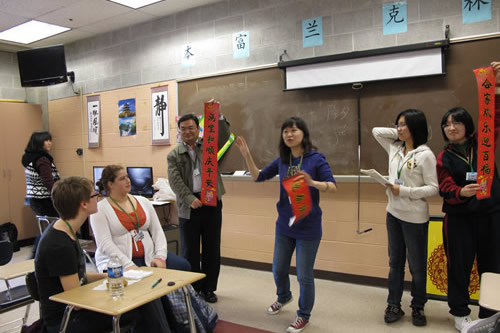 师生不仅全天参与学校各类学科课程,参加学校课余各俱乐部活动、体育比赛和周末舞会,而且为美国同学教授中文、讲解中国春节习俗、表演联欢节目。同学们表现出敏捷的适应能力、自然的亲和能力、语言的表达能力和诚挚磊落的作风,给友好校师生留下了良好深刻的印象。在富兰克林高中校长Timothy G. Rusnak先生和堪萨迪学校Christopher Bright先生的大力支持下,各位友好校领导和老师们热情接待我校教师,毫无保留的为我校提供了宝贵的管理、教学经验及资料。
