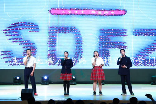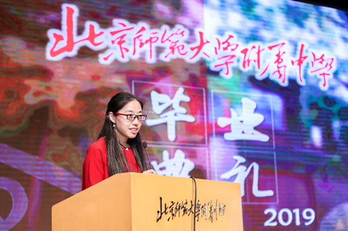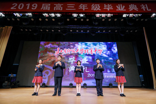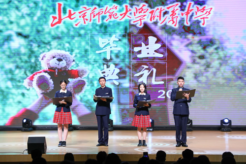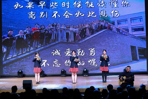 丁蕊老师回顾了同学们在三年成长中的点点滴滴,希望同学们无论在何时何地,永远不忘记自己是诚、爱、勤、勇的附中人。随后,每一位任课教师的款款寄语,也以视频的形式展示出来,台下掌声不断。