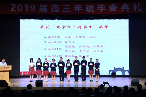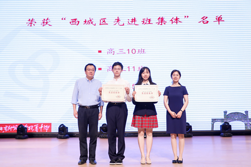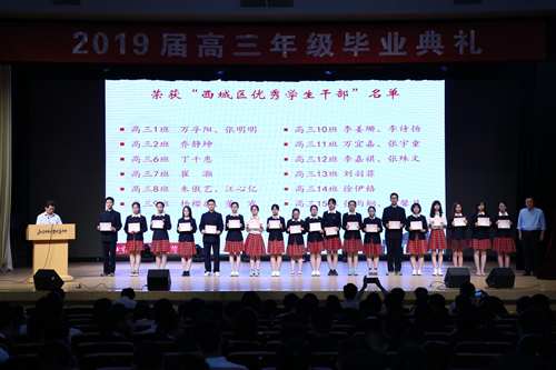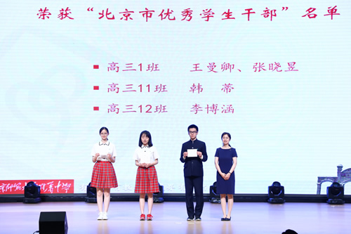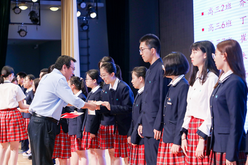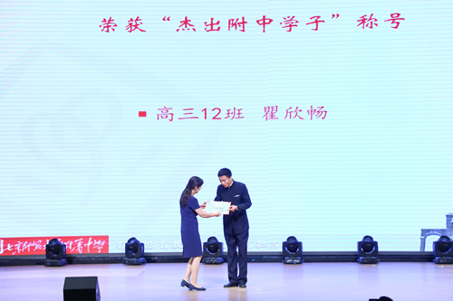 梁原草副校长宣读了市区三好学生、优秀学生干部和优秀班集体名单,王莉萍校长和许建勇书记为他们了颁发证书和奖状。其中,高三(12)班瞿欣畅同学荣获“杰出附中学子”称号。所有人都为三年来同学们取得的优异成绩感到骄傲与自豪。