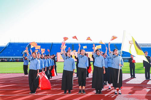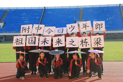 入场式上,全校从初一到高三共87个班级组成方阵队伍,以“我和我的祖国”为主题,用新颖别致的入场创意,进行了精彩的亮相,为祖国的70周年华诞献上祝福。同学们步伐整齐、精神抖擞、气宇轩昂。一个个精心编排的变幻,一次次完美的表现,一声声响亮的口号,展示了附中学子的青春与活力和对祖国、对附中、对班级的热爱之情。