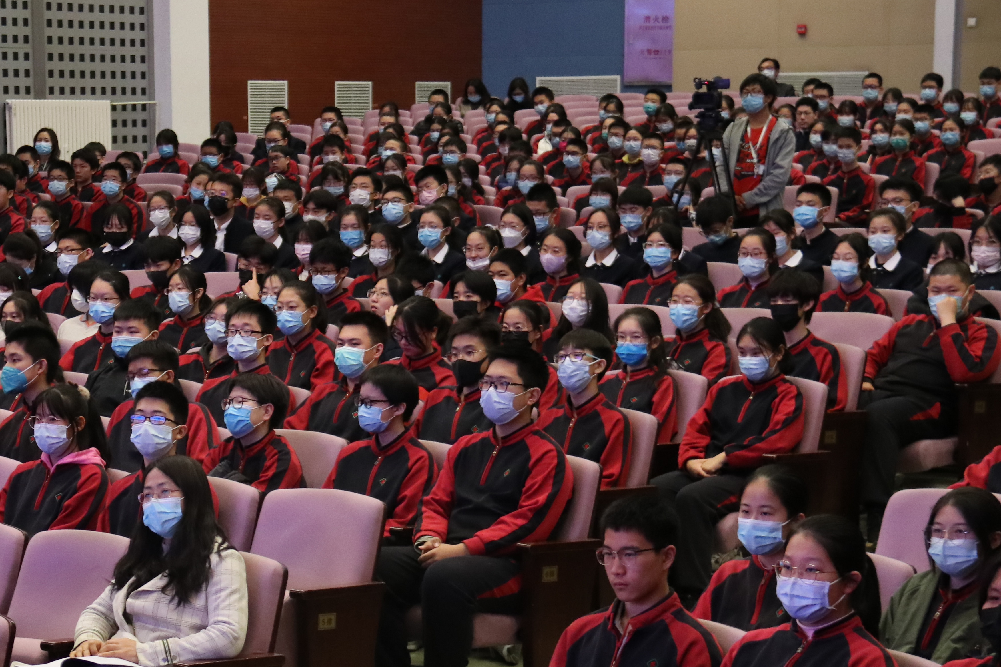随后,初三年级全体教师彰显各学科特色,通过视频为初三学子加油鼓劲。看到老师们的亲切面孔,会场掌声雷动。师生齐心,相信定能携手百日,共铸辉煌。