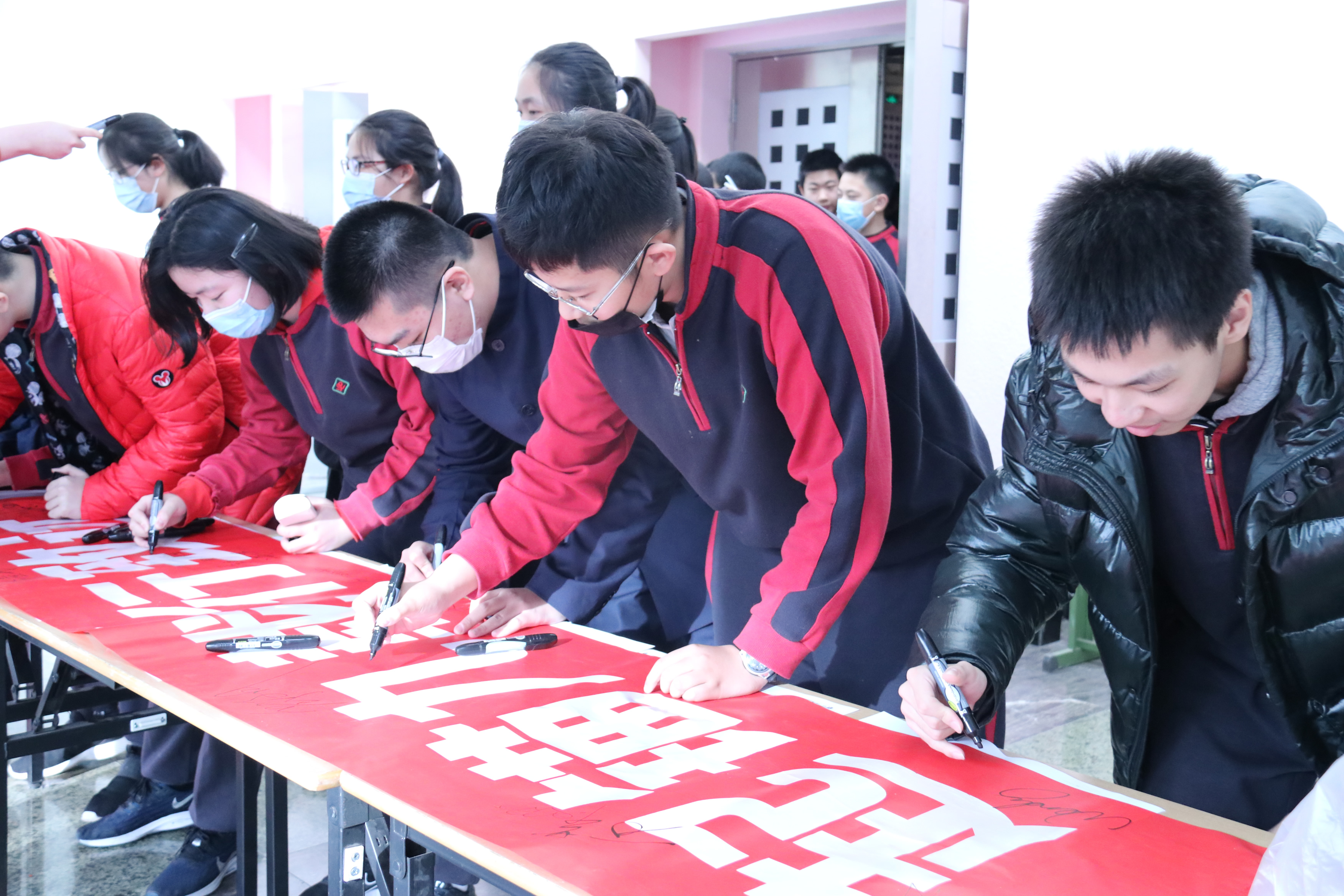大会结束后,校领导和同学们纷纷在活动主题横幅上签下自己的名字。