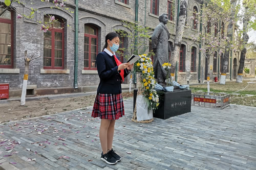 4月12日我校南校区升旗仪式上,初一年级的一位位学生代表声情并茂地朗诵他们写给英雄们的致敬词,表达对英雄的崇高敬意,场下的同学们则报以一阵又一阵热烈的掌声。这是我校初一年级举办的“致敬英雄 点亮理想”系列活动之一。