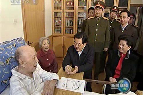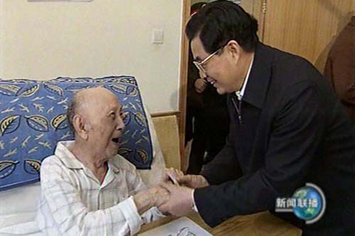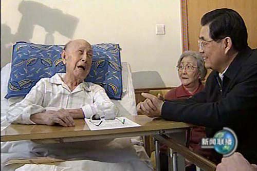1月19日上午,中共中央总书记、国家主席、中央军委主席胡锦涛来到钱学森家中,看望这位享誉世界的杰出科学家、中国航天事业的重要奠基人。