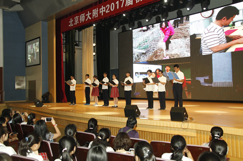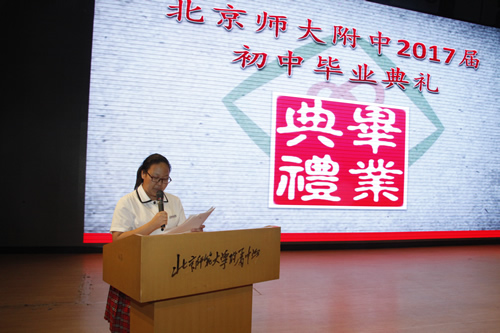 典礼在同学宛转悠扬的朗诵声中拉开帷幕。同学们回顾了在附中的三年生活,一张张过去点滴的照片,勾起了对初中生活的回忆。