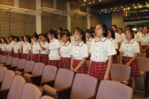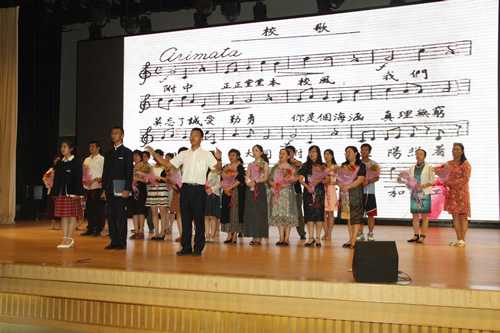 随后,由初三学生创作的歌曲《致附中》悠悠响起。“城南巍巍我附中,育人百年长存风”,同学们对母校的依恋之情充斥着百年礼堂