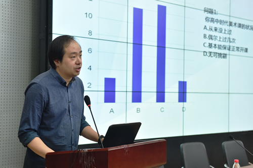 我校段超老师在本次经验交流现场会上做了题为《美术课堂的监控与评价之手—美术学习手册使用报告》的主发言。另外高一年级的王曼卿、黄泽宇、崔灏以及初二年级郑莫勋同学作为学生代表,在会上做了课前欣赏和创作实习报告,向与会老师展示了我校学生美术学习的面貌,取得了较好的反响。