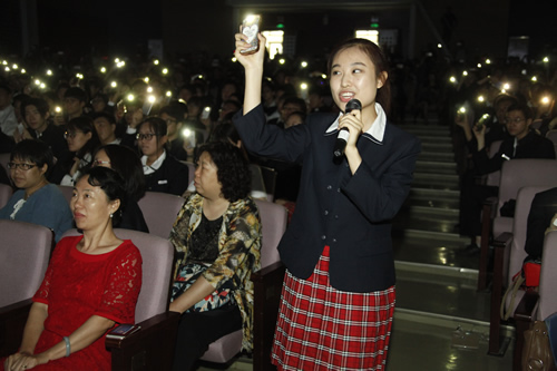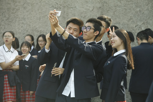 随后,全场灯灭,骊歌响起。部分毕业生演唱歌曲《启程》。演唱者们从观众席登上舞台,与台下同学一起将手机随歌声的韵律挥动,点点星光梦幻般点亮观众席和整个舞台。略带伤感的歌声令离别时刻的不舍更加强烈,许多同学不禁潸然泪下。 学生代表高三一班的邹宇灵在发言中表示:“作为附中学子,我们应构建与学问、与家国、与世界的纽带,做到家国在心里,世界在眼里,学问在手里。让我们相约在2049年,为共和国拍出最美的照片!” 家长代表林红女士表达了对附中的感谢,感谢附中不仅关注学生的成才问题,更关注学生的成人问题。“全人格教育”培养了学生的独立思考能力,让孩子们受益良多。