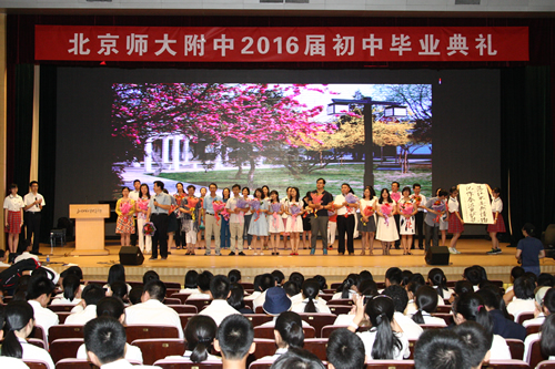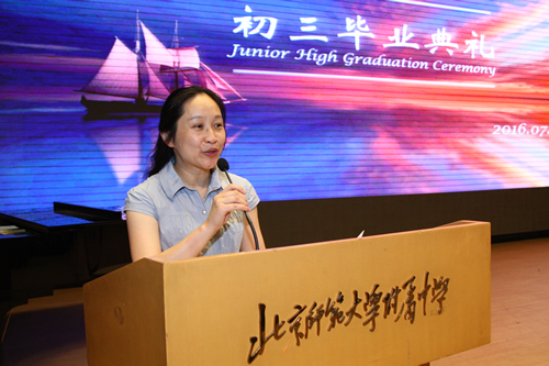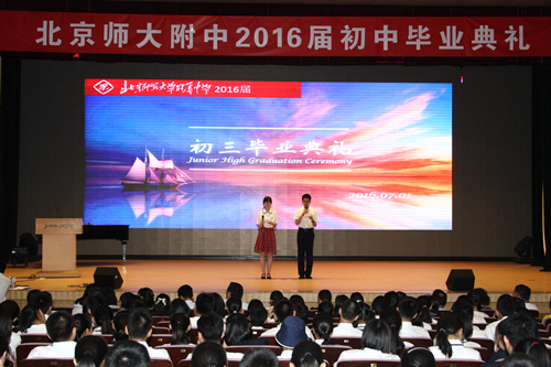 2016年7月1日上午九点,我校2016届初中毕业典礼于附中百年礼堂隆重举行。王莉萍校长、许建勇书记等学校领导、全体初三教师、学生及部分学生家长出席了本次典礼。