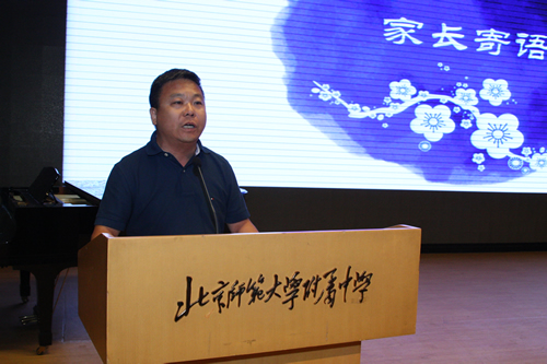 初三9班尔天漪同学的父亲作为家长代表发言。他用激扬的话语激励同学们牢记母校的辛勤付出与辛苦培养,并祝愿同学们在今后的人生之路上奋发自励,成为社会的栋梁。