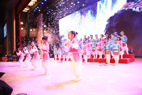 在稚嫩的校歌清唱及大合唱中,汇演正式开始,韩桂新校长首先为此次活动进行致辞,紧接着各班节目有条不紊的展开了......在前门分校师、生、家长几个月来的通力配合和精心准备下,各班的演出或充满童趣,或斗志昂扬,或柔情舒缓、或情感充沛,将自己班级对春天、对校园、对同学、对祖国的情感寄托在诗歌和歌曲中。最后,合唱团的表演及全场的《少年中国说》朗诵将整场节目推向高潮。