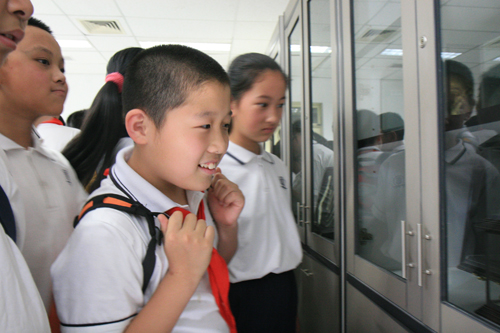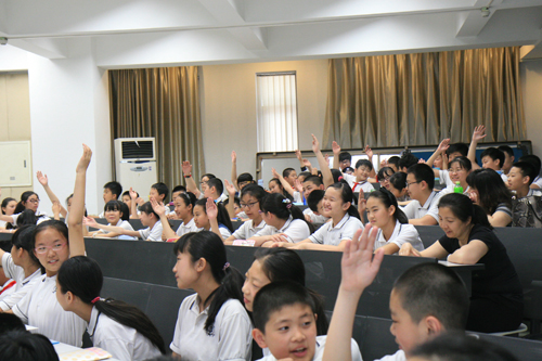 2016年5月20日,我校教育集团成员单位陶然亭小学韩建丽校长带领10名教师及六年级毕业生106人走进了我校,让同学们体验即将迎来的初中生活。王莉萍校长、许建勇书记、李华艳副书记参加了本次活动。心理教师王晓菁老师精心设计的“左抓右逃”放松活动让孩子们很快打消了紧张的情绪,王老师主要以初中生活什么样?如何调整心态快速适应中学生活为主要内容为同学们介绍了初中生活,同学们时而兴奋举手和老师互动,时而奋笔疾书记下中学秘籍。第二个环节是参观校园,同学们分成四个小组轮流参观了生物实验室、物理实验室、化学实验室和爱国主义教育基地钱学森纪念馆。在实验室里同学们认识了各种实验仪器,物理实验室同学们被实验室老师精心准备的透镜成像和发电机原理两个兴趣小实验深深吸引住了。第三个环节,同学们分成几个小组分别走进了初中语文、数学、音乐的课堂,体验中学课堂的精彩。还有的小组直接和初中的同学进行了面对面的交流,深入了解体验初中生活。